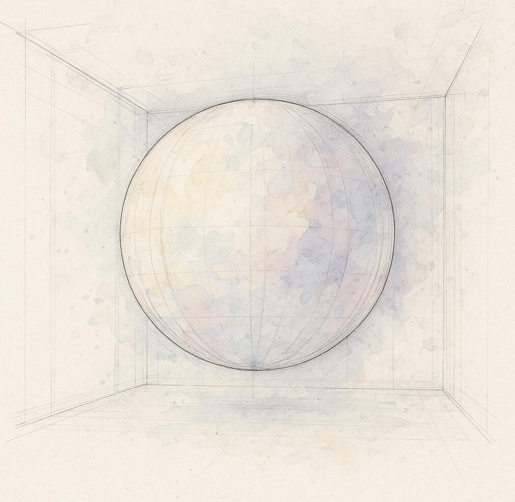 Once used to measure the atmosphere, the balloon is now repurposed as a luminous archive, floating weightless and waiting. Its surface becomes a canvas for shifting visual narratives — an interplay of light, motion, and abstraction. The projected content suggests not only data, but memory: dissolving maps, spectral signals, soft codes, and imaginary topographies. As light pulses and flows across its volume, the sphere takes on a presence — like a celestial body caught between states, always watching, never speaking.